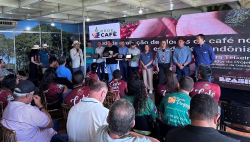 Os dados do projeto CarbCafé chamaram atenção ao apresentar o monitoramento do carbono em áreas cafeeiras e o mapeamento de indicadores socioeconômicos da produção de café das Matas de Rondônia. Os principais resultados foram discutidos no painel Cafeicultura regenerativa e sistemas integrados agroflorestais como alternativas aos desafios climáticos, com a participação dos pesquisadores Carlos César Ronquim (Embrapa Territorial) e Enrique Alves (Embrapa Rondônia), do analista Calixto Rosa (Embrapa Rondônia), além de Oberdan Ermita (Sicoob Credip) e Juan Travain (Caferon).