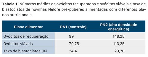 “Os maiores índices de crescimento animal e de aumento de percentuais de gordura nas novilhas do PN2 podem ter influenciado a puberdade precoce e o aumento do número de ovócitos viáveis, permitindo que elas apresentassem o mesmo potencial de desenvolvimento embrionário que os ovócitos de vacas adultas”, comenta Martins, acrescentando que o maior peso corporal e a deposição moderada de gordura possibilitaram, ainda, que as novilhas atingissem o peso para reprodução sugerido aos 12 a 14 meses de idade.